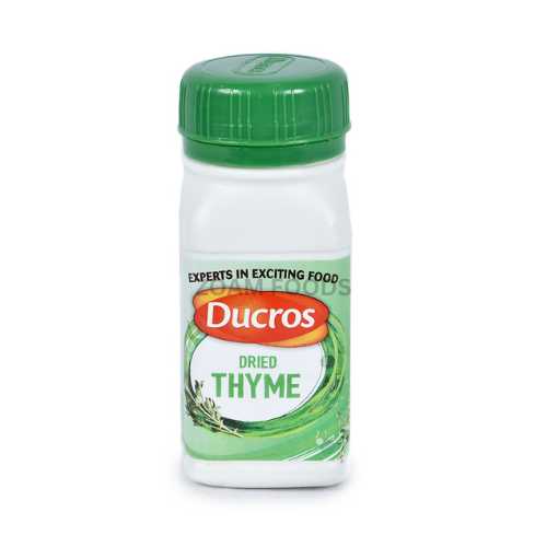 Ducros Thyme is a premium herb that brings a burst of aromatic freshness to your dishes. Carefully harvested and expertly dried, our thyme is a culinary essential known for its versatile and earthy flavor profile. Sprinkle it into soups, stews, or roast meats to enhance the depth of your recipes. Packed in a convenient and airtight container, Ducros Thyme preserves its natural essence, ensuring you have the perfect herb at your fingertips whenever inspiration strikes in the kitchen. Transform your meals into gourmet experiences with the timeless quality of Ducros Thyme. Also available in packs.